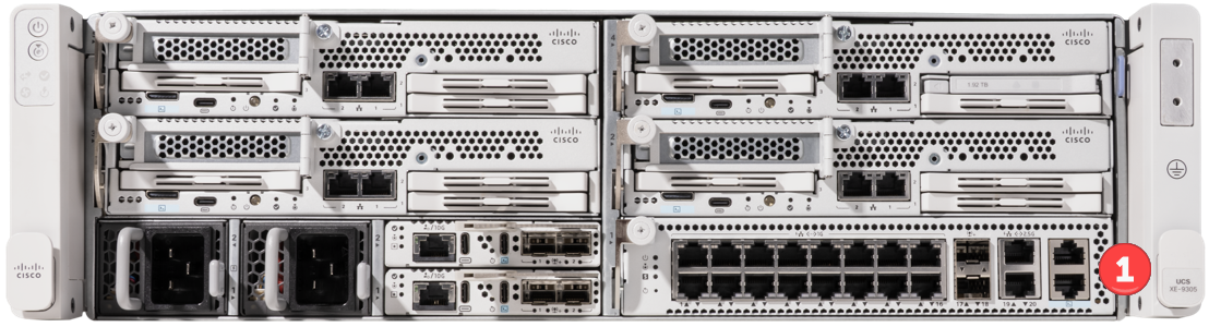 There are a few things that we can configure on the platform that would relate to HCI. First there's a network slot on the bottom right (1) - this is a really cool feature that exemplifies the modularity of the platform, however, it isn't required. This means that at the edge, a customer could have up to 5 compute (or HCI) nodes. Let's modify the image to reflect as such: